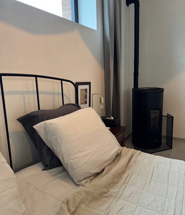 À l’intérieur, vous trouverez un grand lit double (160x200 cm), un coin salon, un poêle à pellets, un espace collation ainsi qu’une salle de bain privative avec WC. Une connexion Wi-Fi et une TV sont également à disposition pour les moments plus connectés.